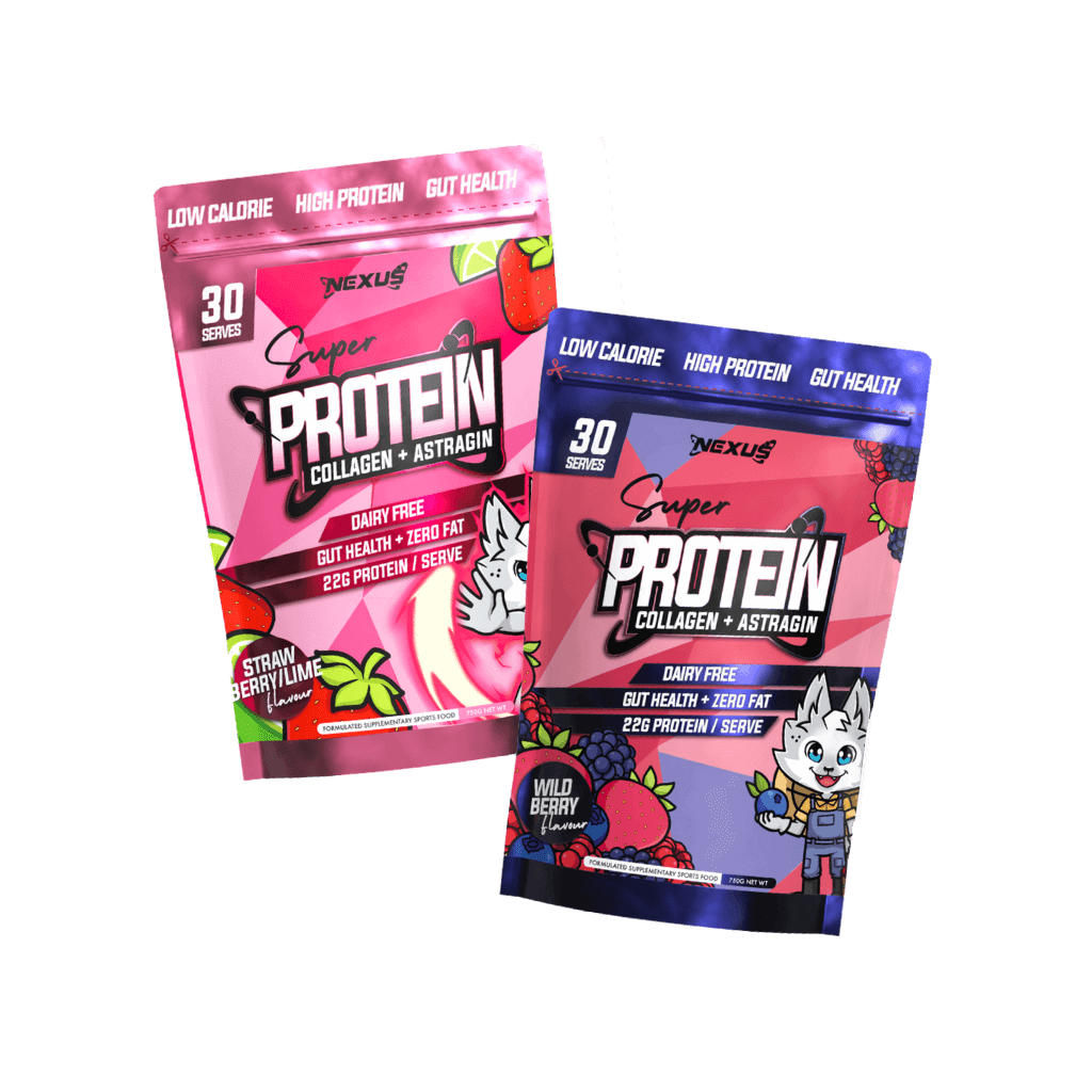 30% of the protein in our body is collagen so it is important to supplement with collagen as we get older. Nexus' Super Protein Collagen + Astragin is designed to provide your body with the ideal amount of collagen to build lean muscle and maintain muscle and joint strength throughout and post workouts. Now available in a twin pack!!